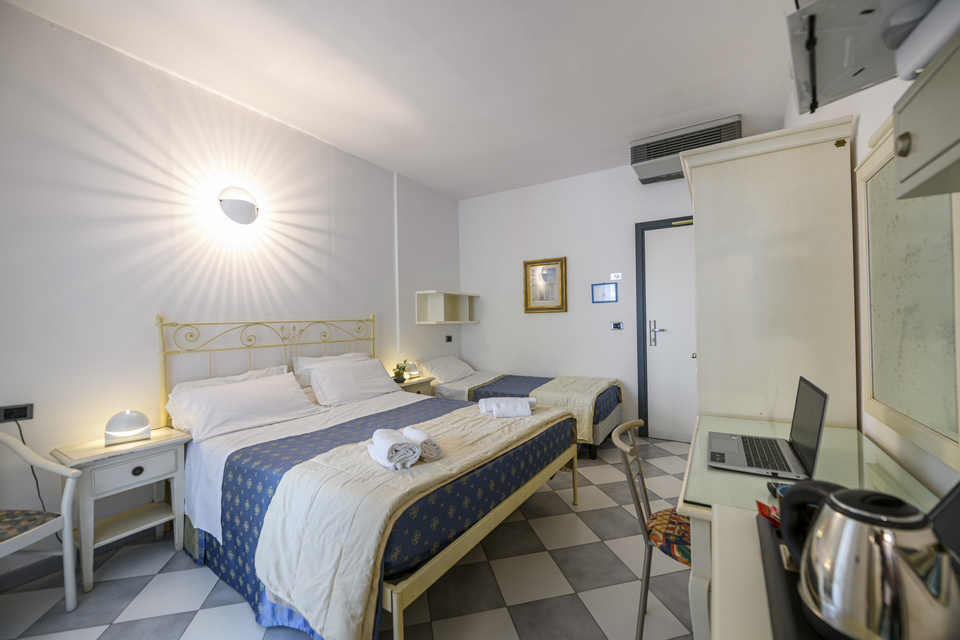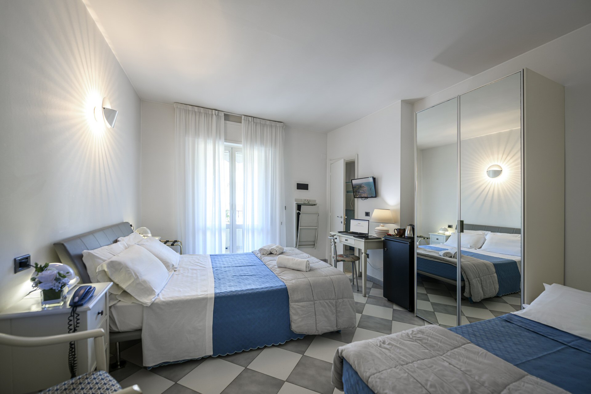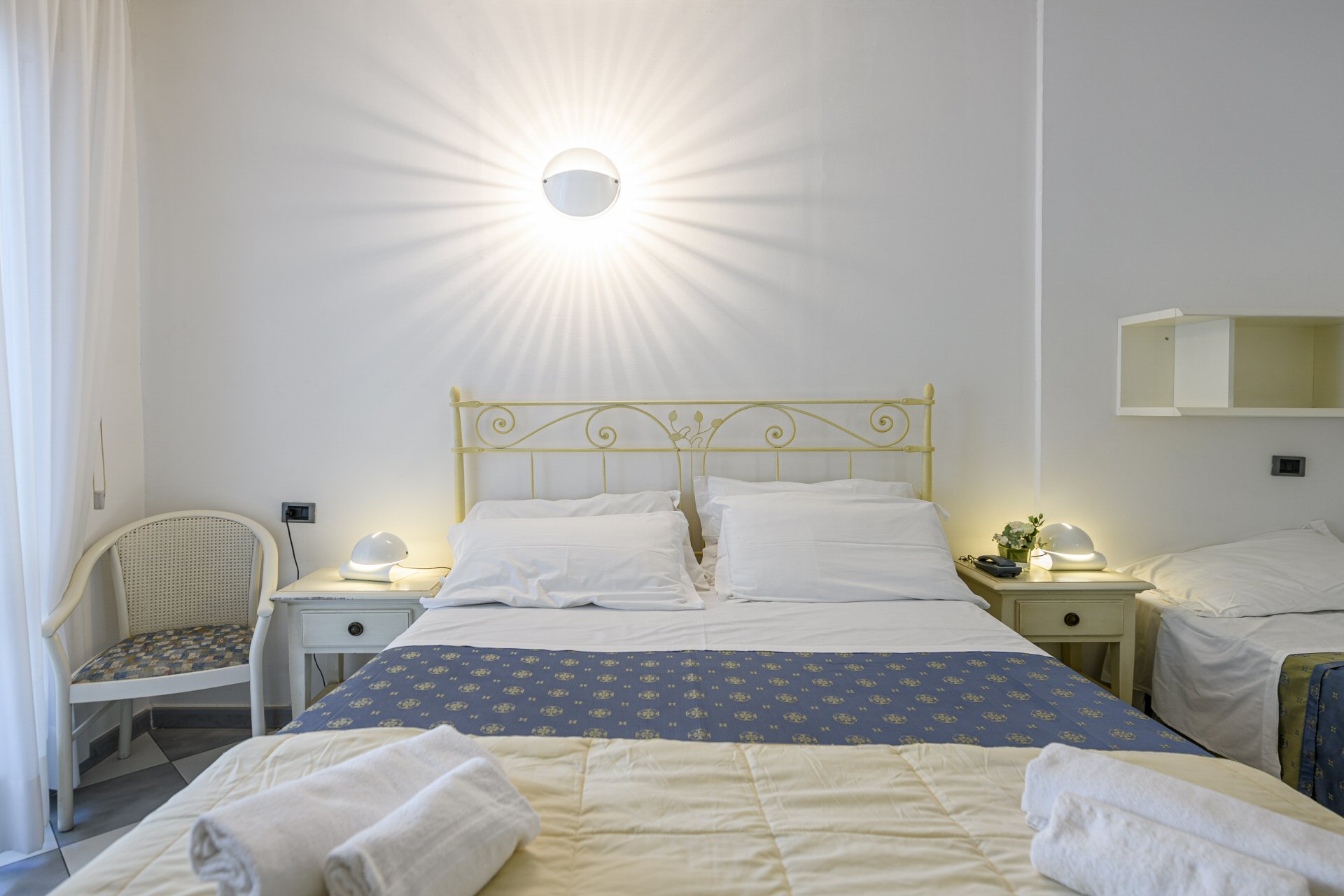 Comode e con tutti i confort, adatte per due, tre o quattro persone, le nostre camere sono tutte con balcone e alcune di esse sono vista mare, e tutte sono dotate di connessione ad Internet wi-fi.