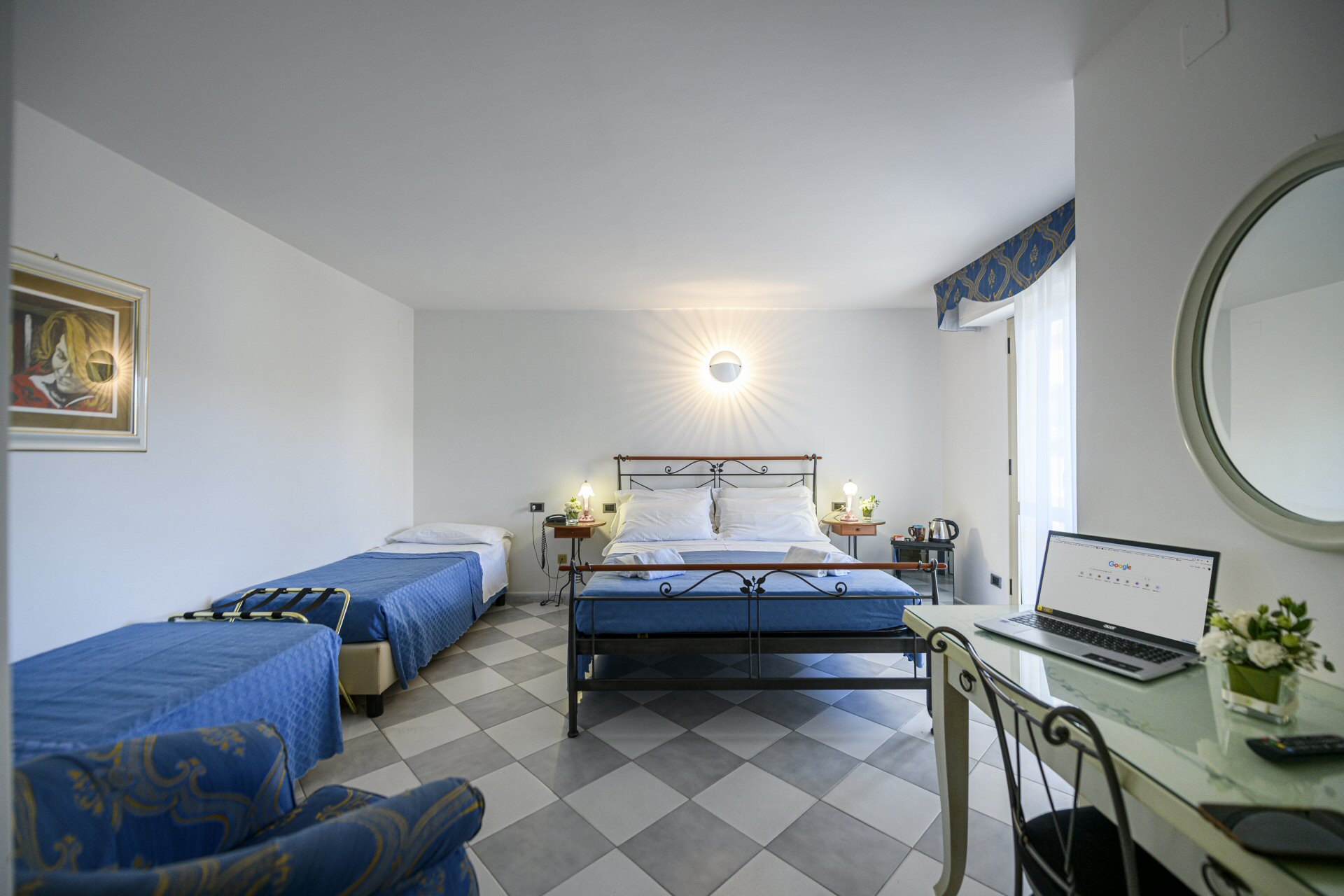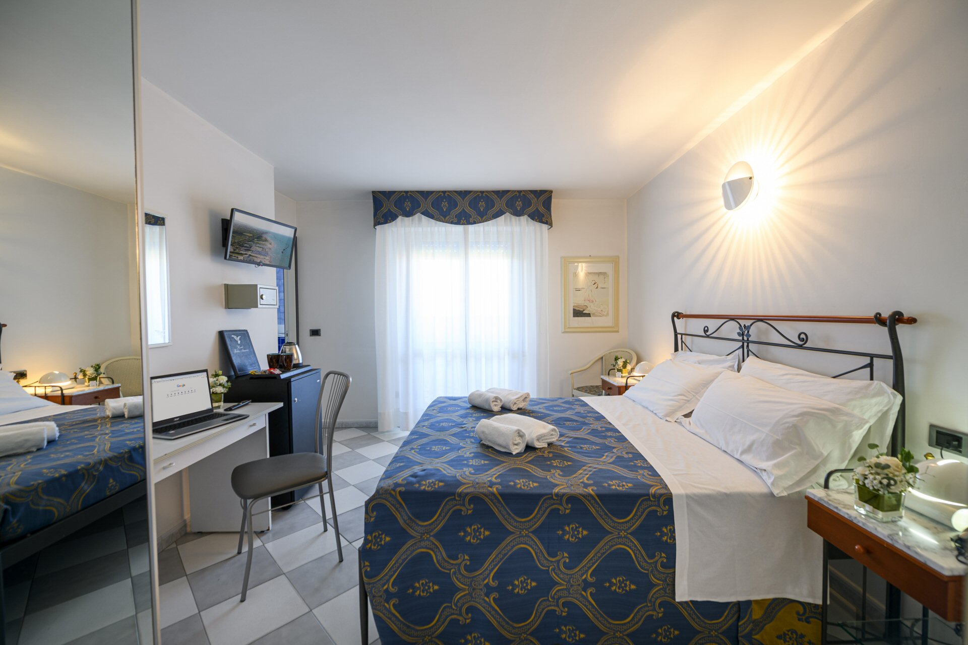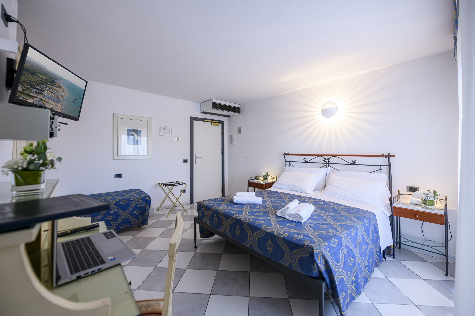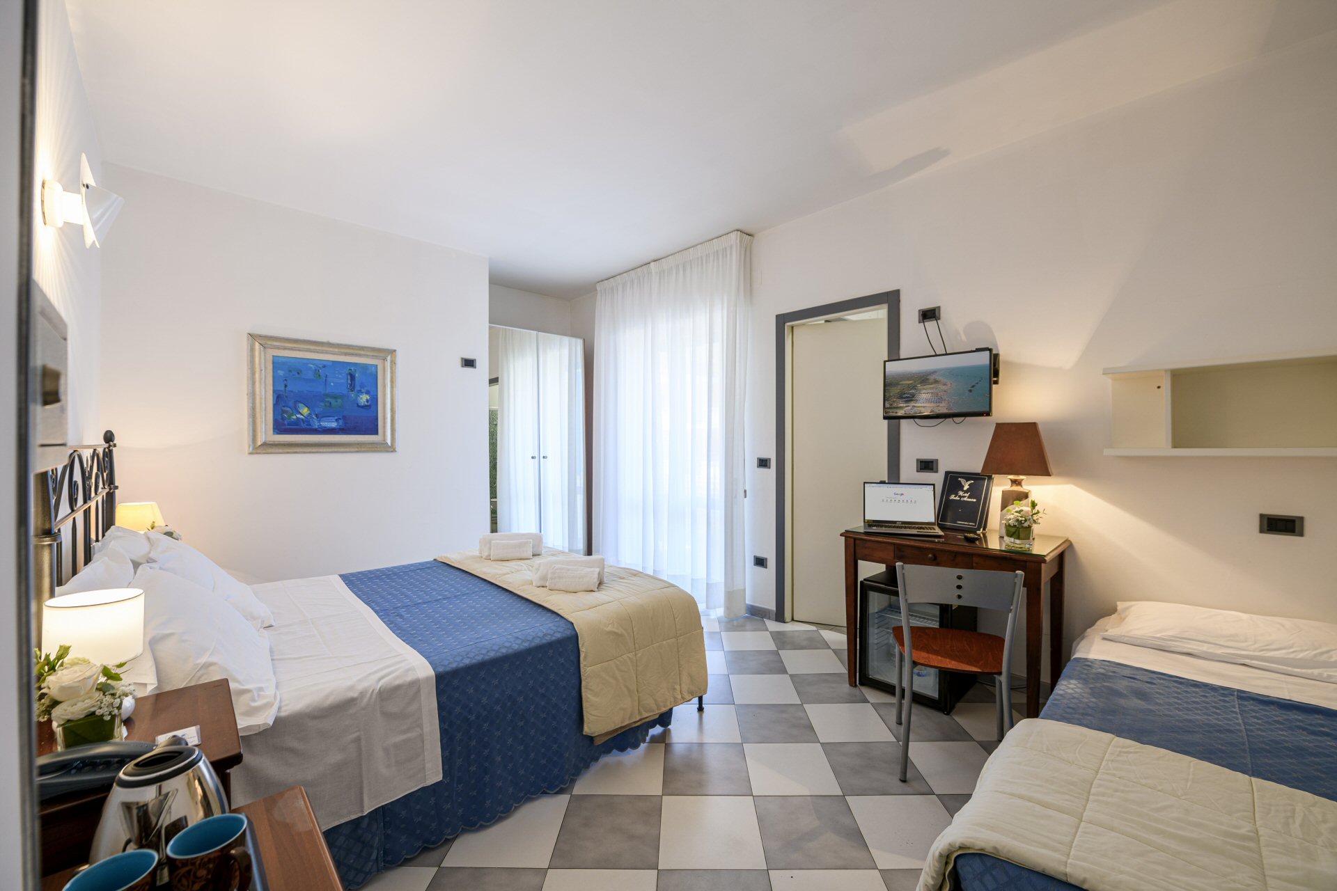 Comode e con tutti i confort, adatte per due, tre o quattro persone, le nostre camere sono tutte con balcone e alcune di esse sono vista mare, e tutte sono dotate di connessione ad Internet wi-fi.